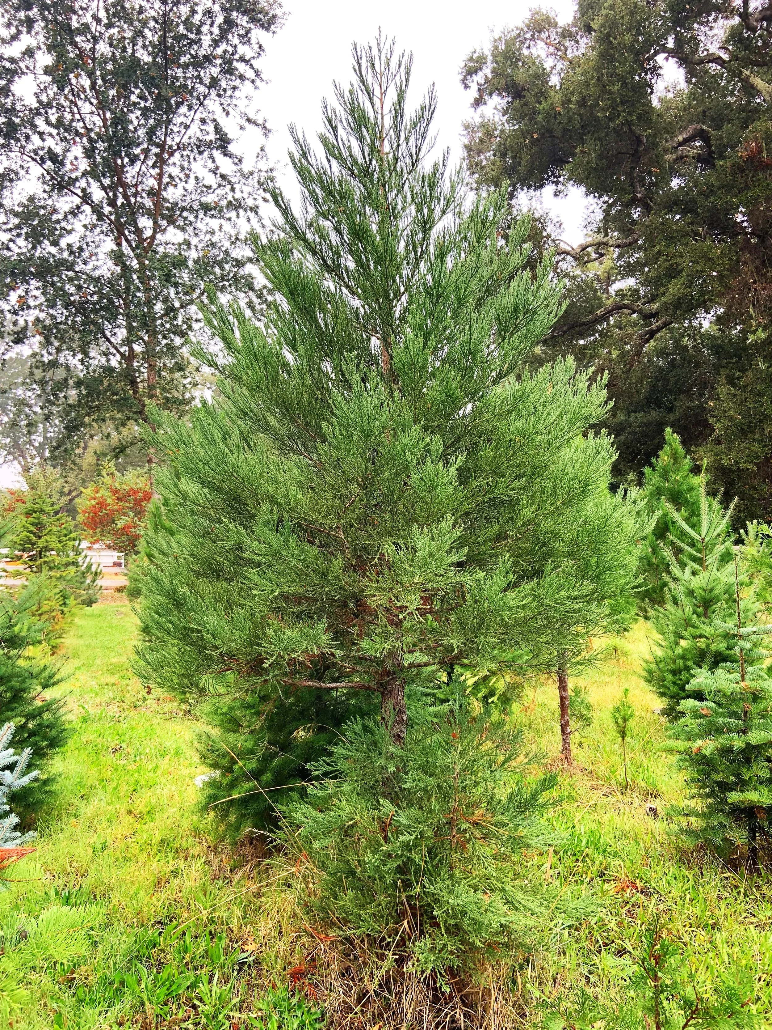 Colors vary from green to blue-green. Tall and narrow with space between branches.